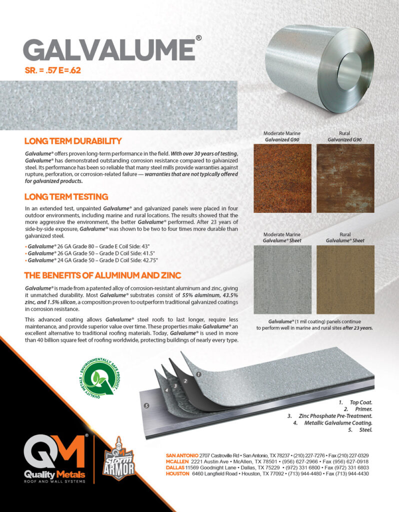 This advanced coating allows Galvalume® steel roofs to last longer, require less maintenance, and provide superior value over time. These properties make Galvalume® an excellent alternative to traditional roofing materials. Today, Galvalume® is used in more than 40 billion square feet of roofing worldwide, protecting buildings of nearly every type.
