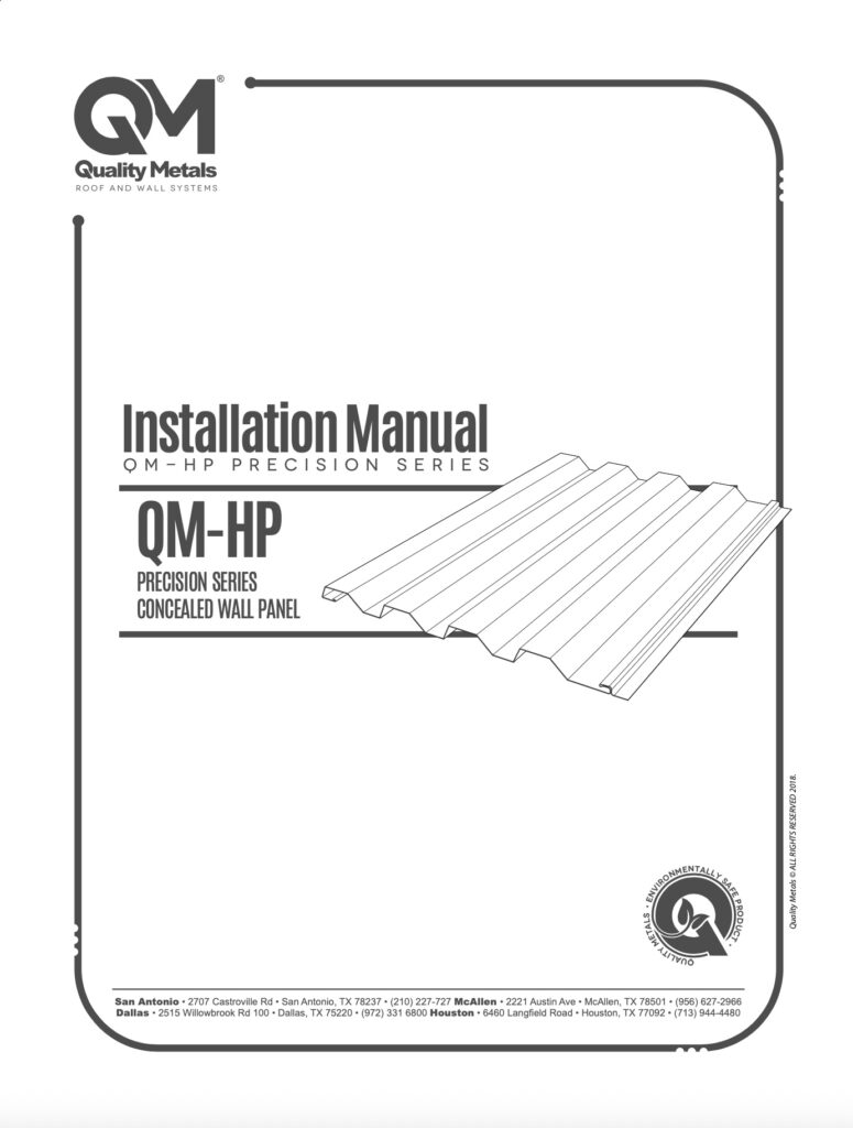 THIS MANUAL PROVIDES SUGGESTIONS AND GUIDELINES FOR INSTALLING THE QUALITY METALS QM–HP SYSTEM AND TRIM DETAILS. THE CONTENTS OF THIS MANUAL REFLECT THE GUIDELINES IN EFFECT AT THE TIME OF PUBLICATION. TO ADAPT TO EVOLVING BUILDING CODES, QUALITY METALS RESERVES THE RIGHT TO MODIFY SPECIFICATIONS AND DESIGNS WITHOUT OBLIGATION. FOR THE LATEST INFORMATION, PLEASE CONTACT US OR VISIT OUR WEBSITE. APPLICATION AND DESIGN DETAILS ARE FOR ILLUSTRATION PURPOSES AND MAY NOT SUIT ALL ENVIRONMENTAL CONDITIONS OR BUILDING DESIGNS. PROJECTS MUST ADHERE TO APPLICABLE BUILDING CODES,
