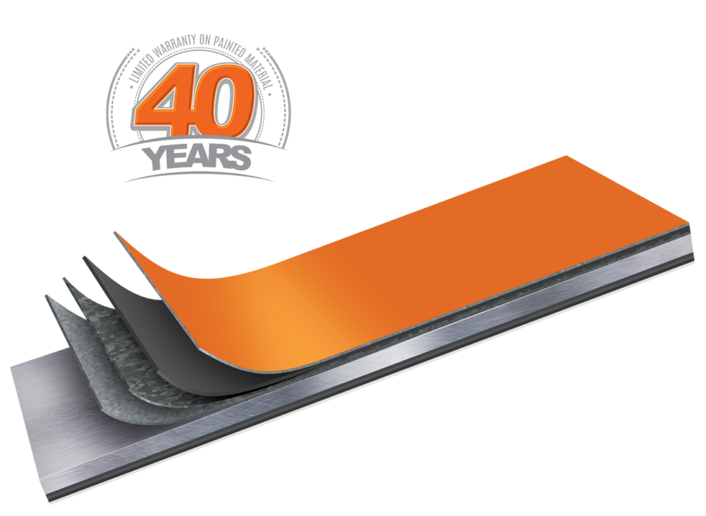 Each coil coated with the Plyf™ Shield Paint System uses Axalta Ceranamel™ SMP technology, known for its consistent film quality, excellent adhesion, and weather-tested performance.